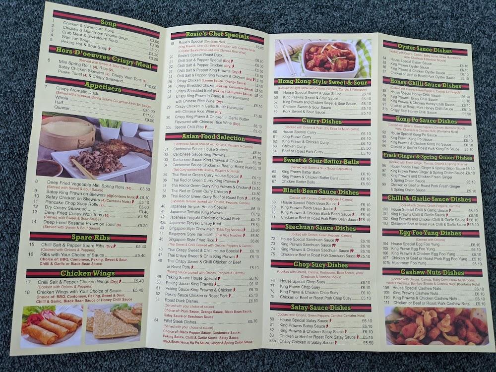 Rosie's Sunniside offers a diverse menu filled with a wide array of Chinese delights that are bound to please any type of eater. The menu includes comforting classics such as chicken and sweetcorn soup, crispy prawn toast, and a variety of chow mein and curry dishes. For those who enjoy a heartier meal, the chef specials, like the crispy beef with honey chilli sauce or the delectable king prawns in satay sauce, showcase the chef's skill and creativity. Each dish is prepared with fresh ingredients and authentic flavors, making every bite satisfying. Vegetarian options are available too, ensuring there's something for everyone. Whether dining in, taking away, or enjoying late-night bites, patrons can expect generous portions at reasonable prices, typically between £10 and £20.
